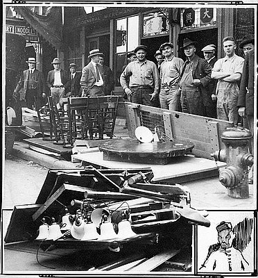 In the nineteenth century, most educated Americans held views of the Chinese immigrants that were similar to those of the West Shore staff. They saw Chinese residents as a wholly alien people who would not assimilate into American society. Americans were particularly distressed that the immigrants apparently preferred to create institutions and businesses that reflected Chinese cultural values rather than adjust to the culture of their adopted land. However, this view conveniently overlooked the fact that Euro Americans actively sought to keep Chinese immigrants apart from mainstream society by placing legal and social restrictions that forced them to congregate in places such as Portland’s Chinatown. The lithograph featured here reflects the ambivalent attitude of educated Americans towards Chinese immigrants. While educated citizens valued the entrepreneurial spirit and hard work of the Chinese, they continued to view them as a class apart from European immigrants to the United States. European immigrants shared some common cultural traditions with Anglo-Americans. However, Chinese immigrants were seen as distinctive from Euro Americans because of their religious and community traditions, language, dress, and appearance.