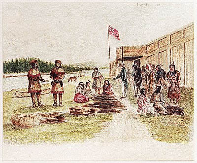 In 1821 the London-based Hudson’s Bay Company (HBC) took over the administration of the fort, following a merger with the North West Company. From 1823 to 1845 Fort Nez Perce became a key post in the HBC’s efforts to denude the lands of the Columbia Plateau—south of the Columbia River—of beaver, the most highly prized fur of the land-based fur trade. Leaders of the HBC’s “fur brigades” depended upon the Umatilla, Cayuse, Nez Perce, and Walla Walla bands surrounding Fort Nez Perce for an adequate supply of horses to carry out their policy of creating a “fur desert” in the lands most easily accessible by American trappers.